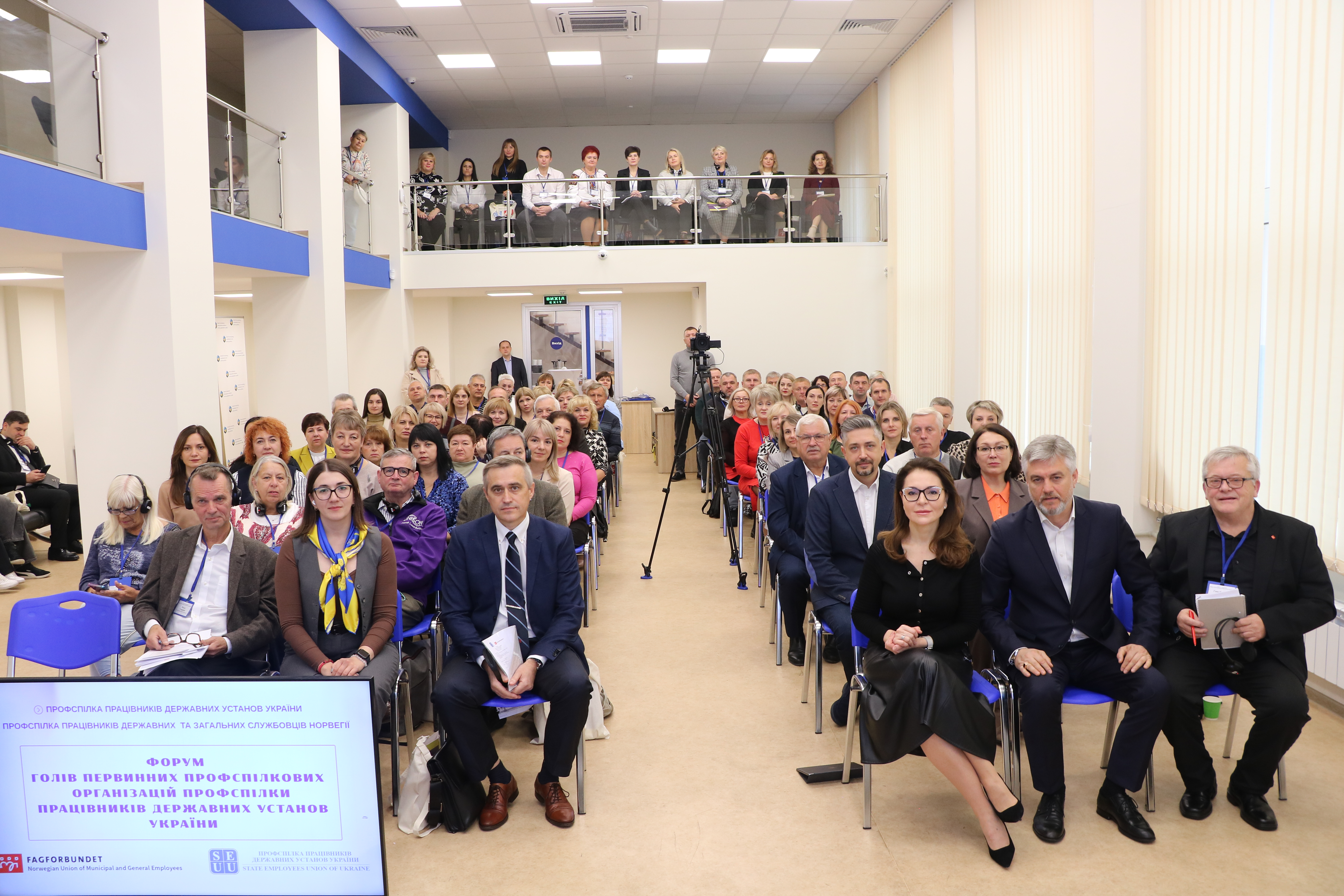 Сила профспілкового руху — у співпраці. Саме вона допомагає долати виклики, захищати права працівників і будувати справедливу державу. Саме про це йшлося під час Форуму голів первинних організацій Профспілки працівників державних установ України, який відбувся у Києві за підтримки Норвезької профспілки працівників муніципальних та загальних служб Fagforbundet 3 жовтня у приміщенні Національного агентства з питань державної служби. Форум обєднав більше 80-ти голів первинних організацій Профспілки з усієї країни.